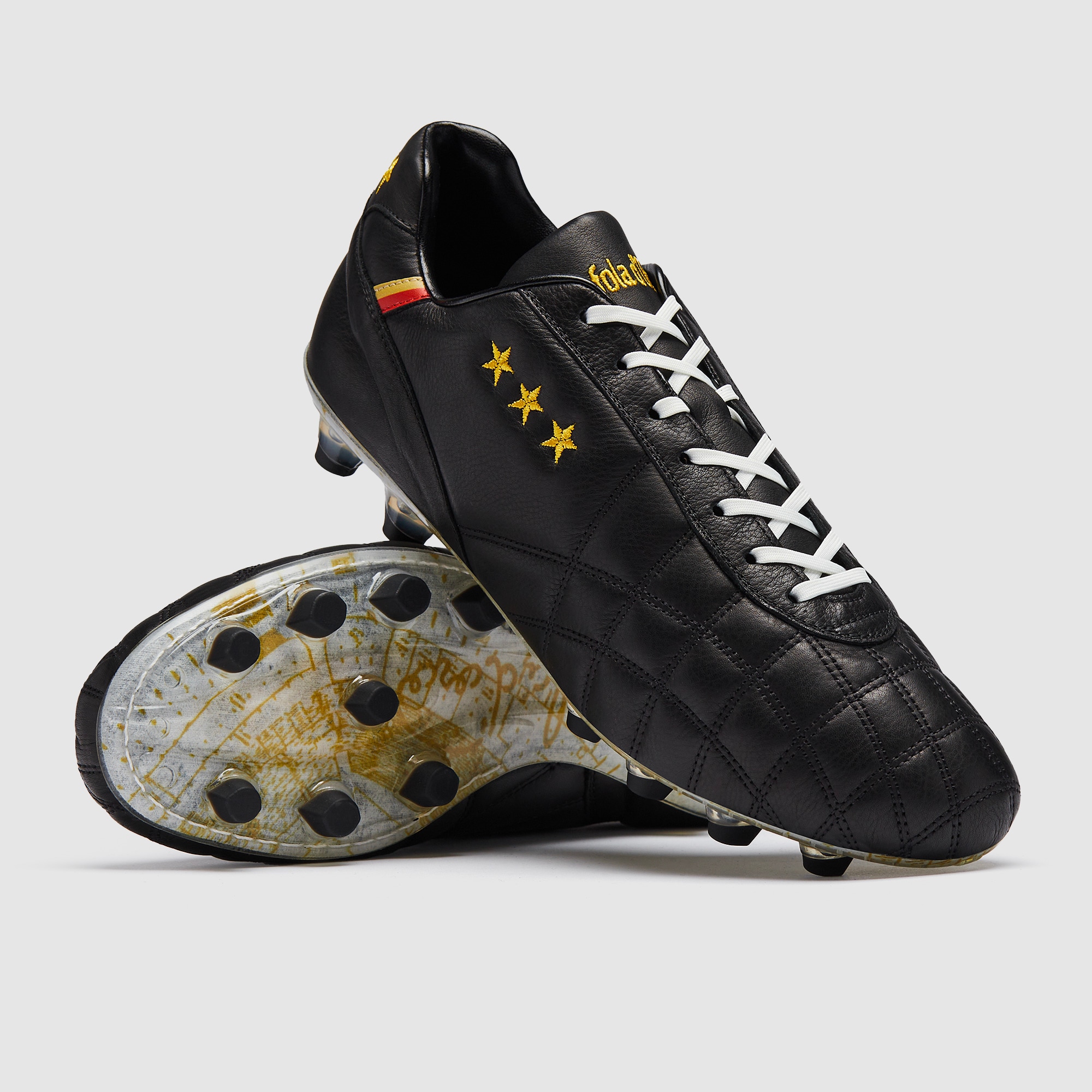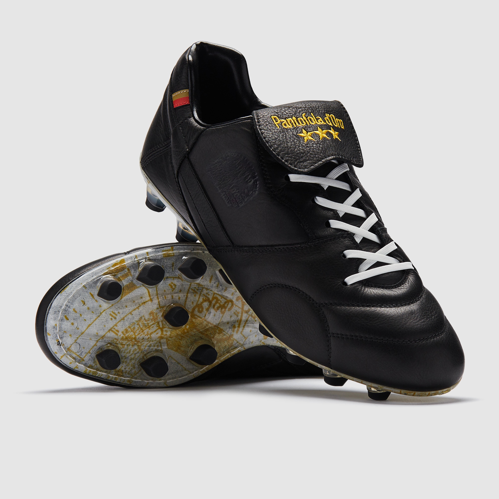 Cada par de botas Pantofola d'Oro cuenta una historia. La piel premium suave se adapta a tu pie como un guante, dándote un confort incomparable y un toque natural que el tejido sintético moderno no puede igualar. Con perfiles clásicos, detalles bordados y placas hechas para un movimiento fluido en terreno firme y blando, estas botas son para los jugadores que prefieren el acabado por encima del estilo. Sin tonterías, solo artesanía, tradición y una conexión pura con el balón.